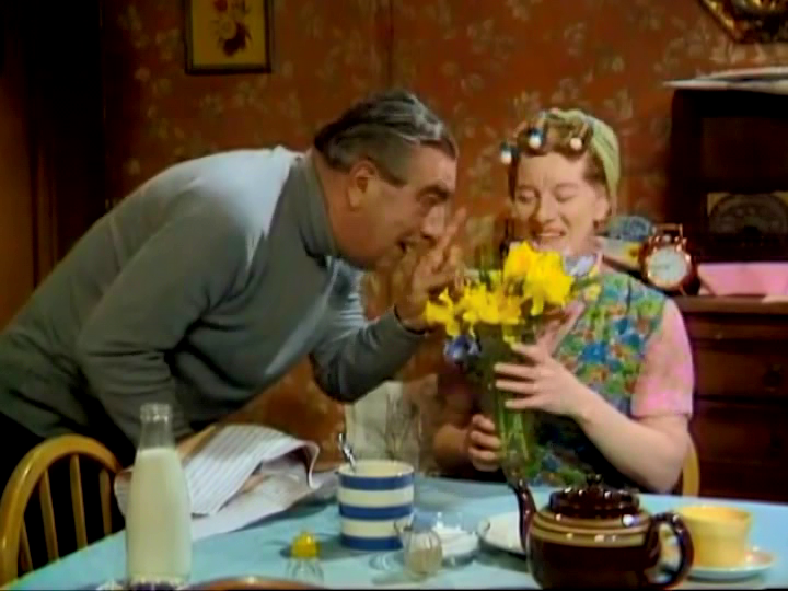 Langton seizes the opportunity to shit-stir by spreading rumours about Jerry’s ‘Askwith’ visit to Blanche, but Jerry pre-empts his efforts by informing Mavis that nothing happened; Ken asserts his intellectual superiority over Janet in characteristically pompous fashion, whilst Janet’s attempt to host a genteel tea for the Bishops is somewhat disrupted by Albert’s greed; meanwhile, Albert remains determined to gain what he regards as moral ownership of Stan’s radio. And the long-anticipated get-together between Billy and Irma is threatened by Hilda persuading her skint husband to lay down a new lino in the bathroom - blocking Billy’s secret route to Irma’s flat. (Rating: 10/10)